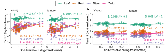 进一步研究证实,这一灵活机制是毛竹在竞争中胜出的关键。与周边绝大多数树种相比,毛竹叶片氮磷比的变异系数相对较低,生产力却能高出约25%。该研究不仅揭示了毛竹作为速生植物成功的生理生态学基础,其提出的“分区稳态”概念更创新性突破了传统生态化学计量学中稳态与可塑性对立的经典范式,为预测和调控森林生产力对全球变化的响应提供了新理论框架。