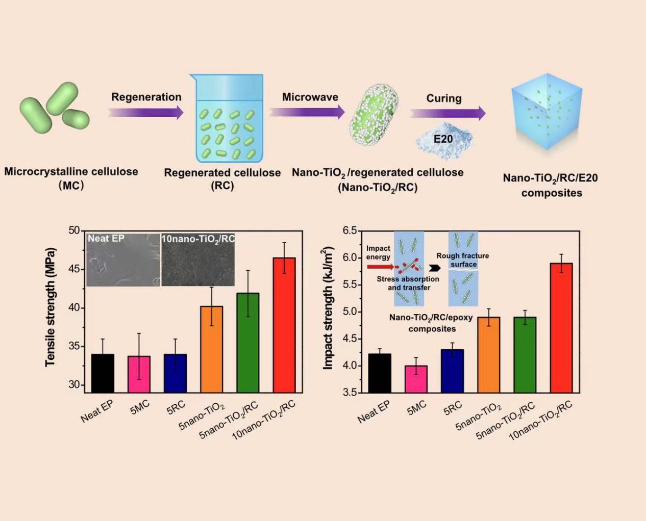 “A nano-TiO2/regenerated cellulose biohybrid enables simultaneously improved strength and toughness of solid epoxy resins”于2021年5月29日发表于复合材料领域国际期刊《Composites Science and Technology》(IF=8.525)上。第一作者为本校博士研究生杨佳瑶,指导老师为beat365平台唯一官网傅深渊教授、刘晓欢博士和南昆士兰大学宋平安教授。