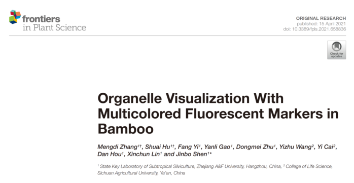 近日,国家重点实验室沈锦波课题组在《Frontiers in Plant Science》(IF=4.402)发表题为“Organelle Visualization With Multicolored Fluorescent Markers in Bamboo”的研究论文。该研究成功构建了毛竹原生质体瞬时表达体系,并构建毛竹细胞器多色荧光标记蛋白,为毛竹生长过程中应对生物与非生物的胁迫以及禾本科植物在防御病原菌的细胞信号转导途径等研究方面提供了很好的平台。