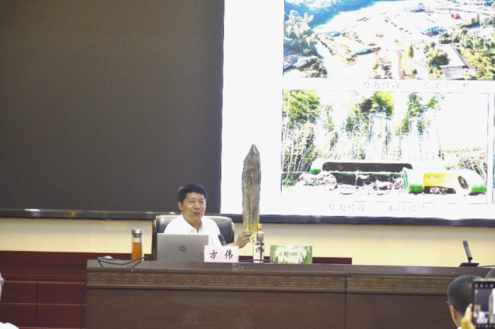 方伟教授还应邀出席了在宜丰举办的首届江西省竹资源高效利用高峰论坛并作主旨报告。报告中,方伟向与会嘉宾重点介绍了beat365官网竹子产业链的研究团队与科研成果,阐释了四川宜宾近年来通过坚持创新发展,建设产业兴旺的美丽竹林风景线,实现竹产业高质量发展的关键举措,介绍了宜宾围绕国家发展战略,建立宜宾林竹产业研究院,以此为依托打造成渝竹产业协同创新中心,抢占区域竹产业发展科技、人才高地的主要做法,并从科学谋划推进竹产业高质量发展、分类发展提升生态高效经营水平、绿色发展做大做强精深加工产业等方面针对江西竹产业高质量发展提出了建议。
