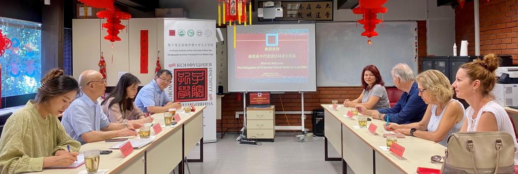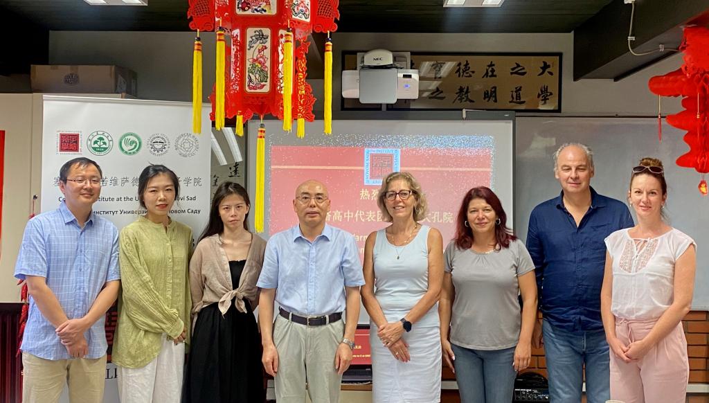 当地时间9月12日,森塔市语言高中(Senta Senćanska Gimnazija)校长伊娃·乌伊哈茨(Eva Ujhazi)一行访问诺维萨德大学孔子学院,就进一步加强双方合作以及新学期中文课程的教学安排进行会谈。诺大孔院中方院长陈晦及相关教师参加。