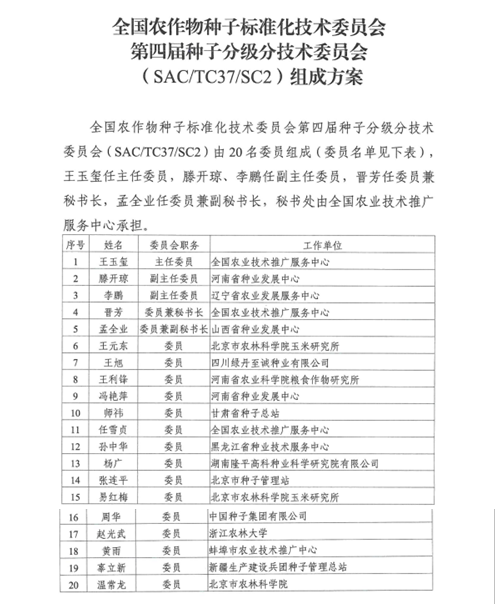 据悉,全国农作物种子标准化技术委员会第四届种子分级分技术委员会由20名委员组成,主任委员为全国农业技术推广服务中心王玉玺研究员,秘书处设在全国农业技术推广服务中心。beat365官网是唯一入选的高校单位。