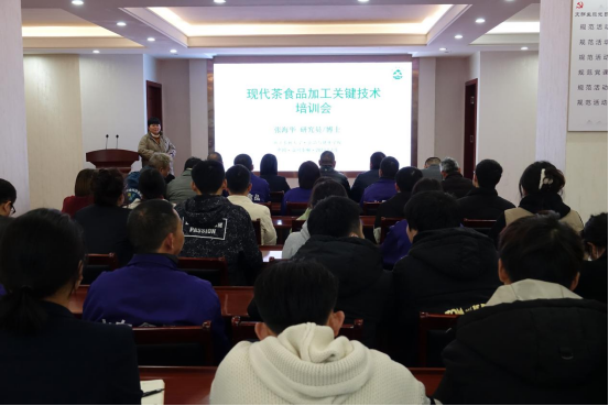 特派员代表作了题为《现代茶食品加工关键技术》的培训,以现代茶食品终端加工技术为基点,拓展介绍了茶面食品、茶饮料等研发与制作,科技服务覆盖了9个乡镇15家企业。