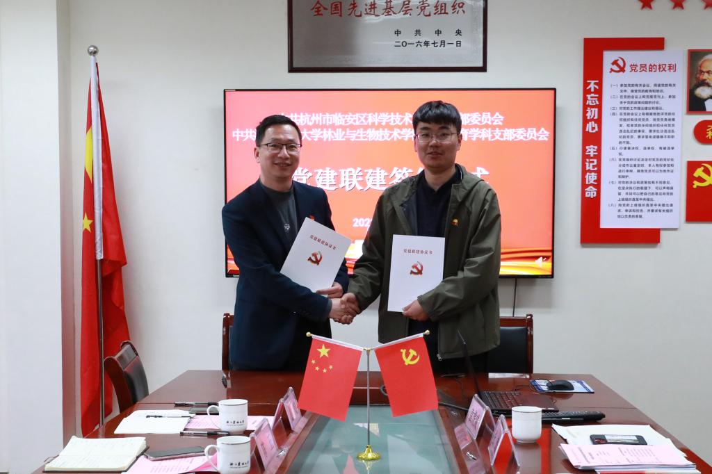 4月13日,林生院森林培育学科党支部与杭州市临安区科学技术局机关党支部在智能实验楼党员之家共同签署党建联建协议。林生院党委书记郑炳松、临安区科技局党组书记沈毅民、森培学科党支部书记黄坚钦、国家重点实验室相关负责人、森林培育党支部和临安科技局机关党支部党员代表参加签约仪式。