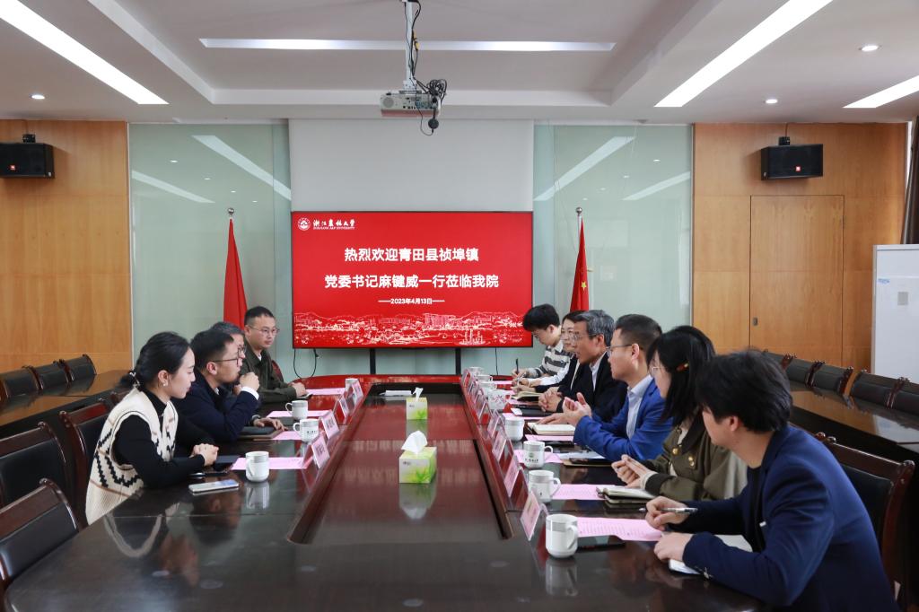 郑炳松与文法学院党委书记朱红东,分别围绕党建引领、学科建设、专业发展等方面介绍了各自学院近年来取得的成绩。他们还就如何进一步加强院地合作、深化党建共建、推动产学研精准对接以及促进乡村振兴等问题,与青田县祯埠镇党委进行了交流。