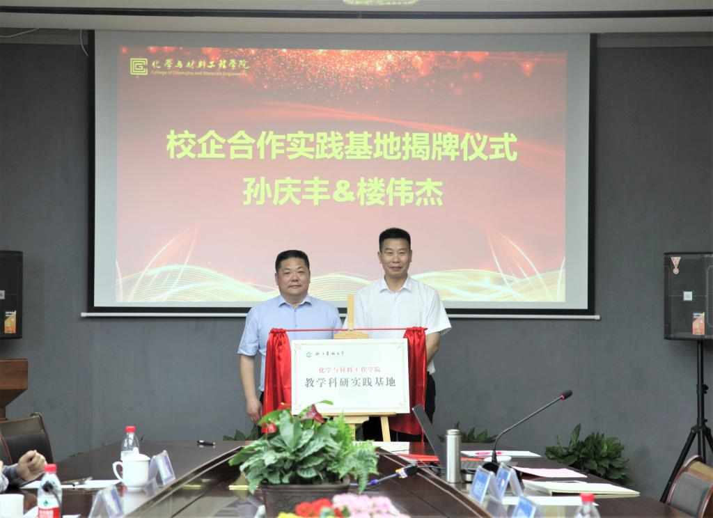 化材学院党委书记谢志新和楼伟杰分别代表校企双方致辞,并一致认为,通过校企合作一定能够实现优势互补、资源共享与协同发展。孙庆丰和海尔希董事长助理王毅分别介绍了学院和企业的基本情况,双方分别共同签订了《战略合作框架协议》和《留本冠名奖学金协议》,并圆满完成校企合作实践基地的揭牌。