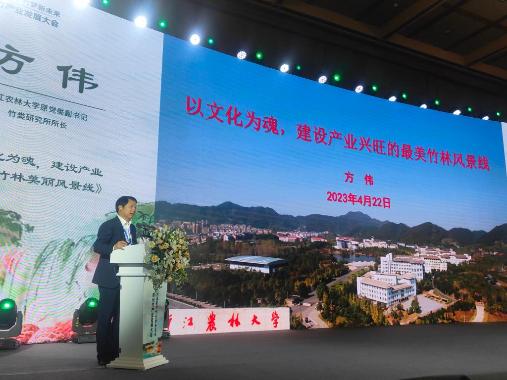 学校竹子研究院名誉院长方伟受邀作了《以文化为魂,建设产业兴旺的竹林美丽风景线》主旨报告、资源环境学院徐林博士受邀作了《竹林碳汇功能研究与成果应用》主旨报告,竹子研究院副院长余学军被聘为赤水市竹产业特聘专家,参加了“竹与未来”对谈会。专家们围绕二产和三产两个维度对竹产业的未来展开对谈,并对竹文旅、竹材的综合利用两个方向做了展望,为竹产业高质量发展提出了许多可供参考借鉴的方向。
