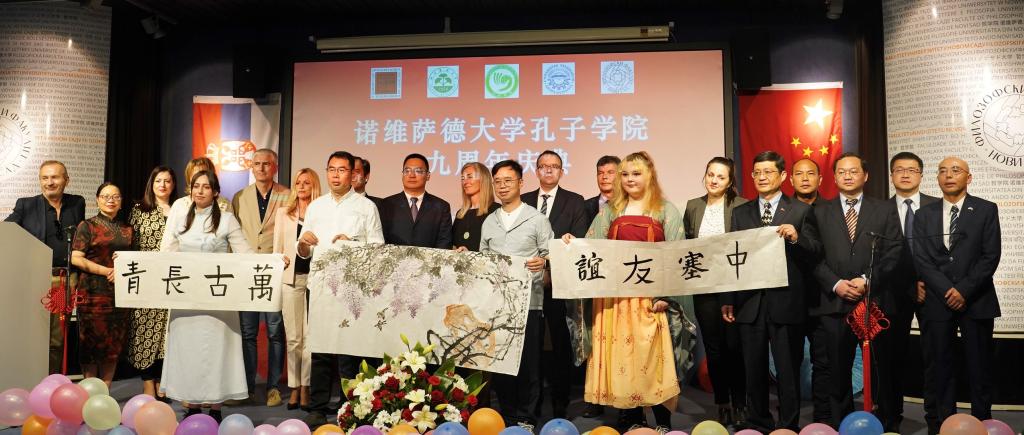 当地时间5月27日,诺维萨德大学孔子学院举办九周年庆典活动。来自塞尔维亚教育部、中国驻塞尔维亚大使馆、伏伊伏丁那省与诺维萨德大学的领导,以及塞尔维亚社会各界知名人士、孔子学院下属孔子课堂和各个教学点师生代表以及中国书画家等近200人齐聚一堂,各个合作教学点的师生们组织策划了中文歌曲合唱、《论语》朗诵、太极、茶艺等众多节目,共同庆祝诺大孔院建院九周年。
