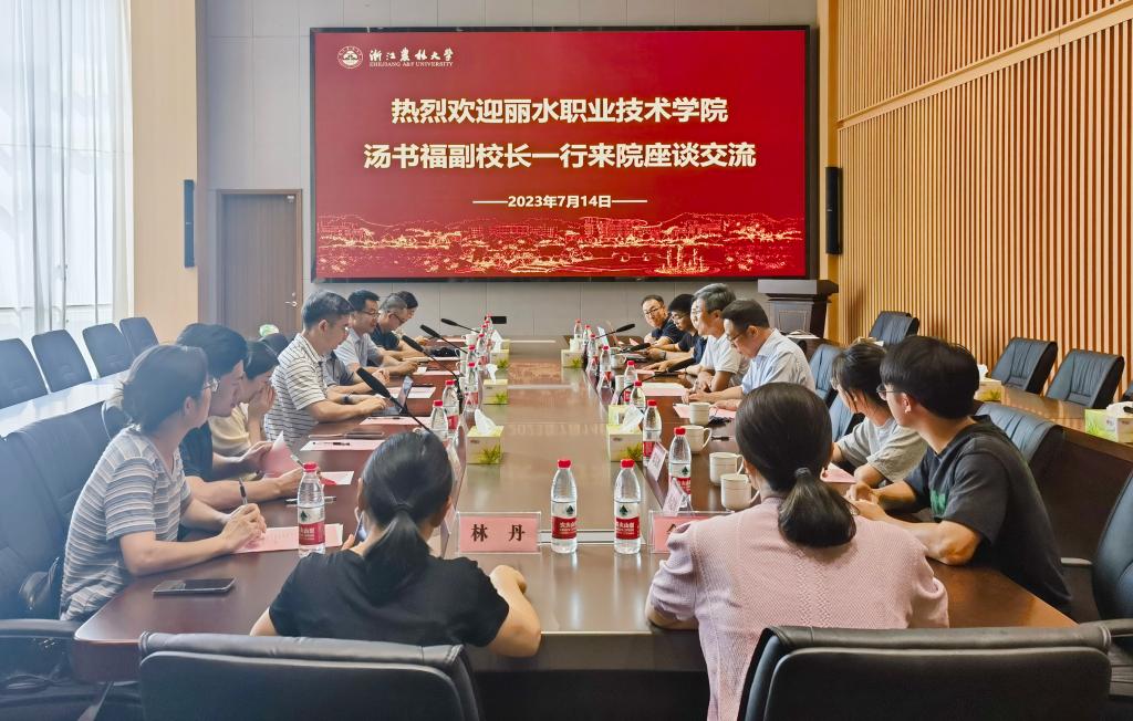 近日,丽水职业技术学院副校长汤书福、林业科技学院党总支书记陈兵红、院长应俊辉、副院长曾科等一行11人来beat365官网交流座谈。林生院党委书记郑炳松、常务副院长王正加、学院学生工作负责人、杭州闻远科技总裁办主任胡秀东、数计学院相关教师,林学(林业技术)201班学生代表参加座谈会。