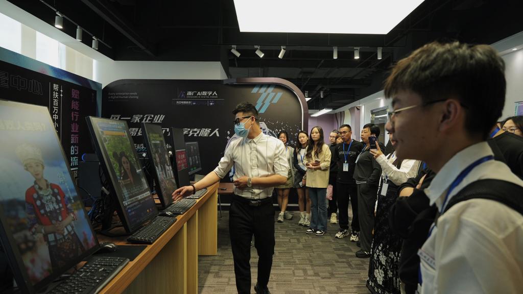 活动中,同学们先后参观了中国top直播电商产业园演播厅、浙江广电互联网数据中心机房、产业园选品中心和直播间,以及1949飞鹊直播基地,“零距离”体验直播幕后工作,并学习了《电商直播培训》课程,进一步了解电商直播的软硬件需求,深入了解电商直播的运营模式,提升了对电商直播行业的认识。