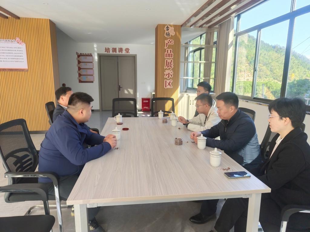 调研组一行先后到大溪边乡上安村、公淤村、丰山茶园等地开展调研、座谈。经调研,上安村水资源匮乏,在村干部的带领下,经过数年探索,因地制宜种起了耐旱的红高粱,逐渐形成了富民强村的特色产业。公淤村依托独有的生态环境发展香榧特色农产品经济,对香榧产业进行统一管理,集中培训制作技术,并以合作社的形式进行销售。