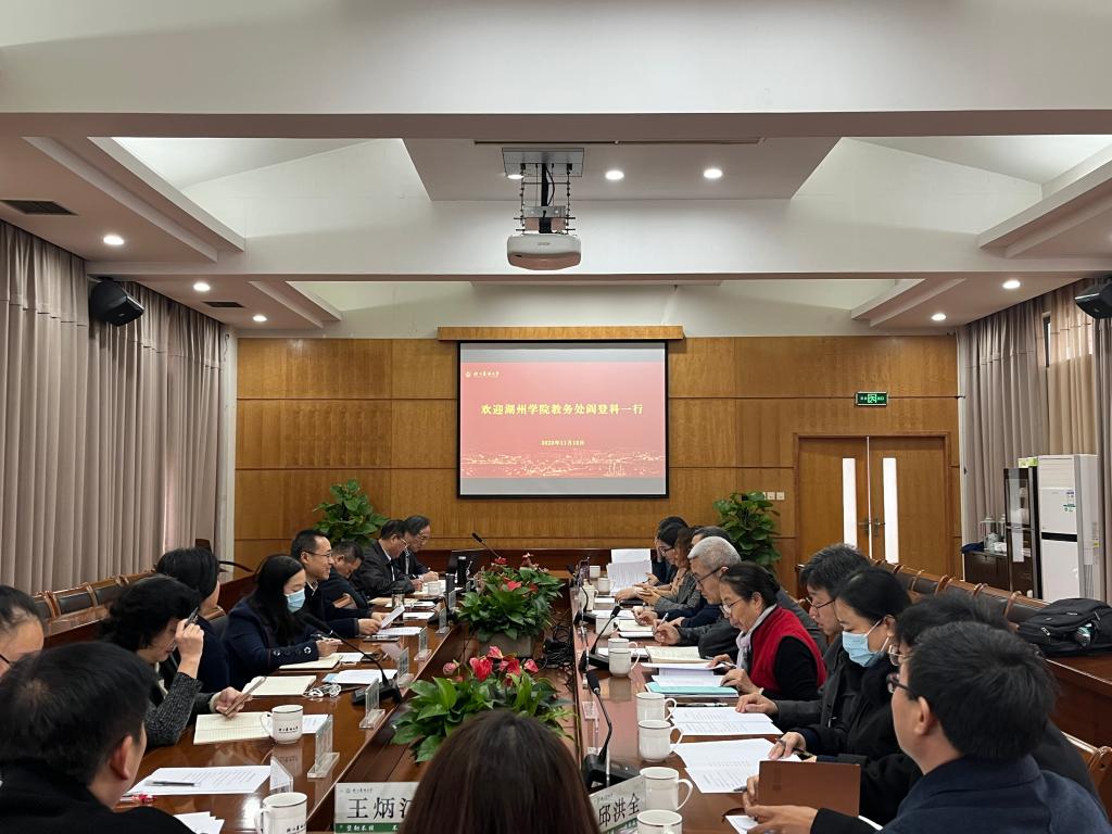 11月16日,湖州学院教务处处长阎登科一行12人来校考察交流。beat365官网教务处副处长,质控中心、教发中心副主任,校督导组成员,质控中心工作人员参加了交流。