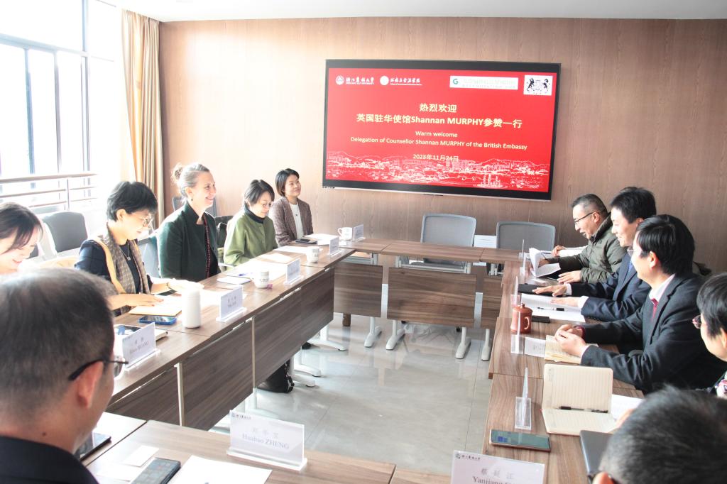 经学院相关负责人邀请,英国驻华大使馆气候变化、能源与环境参赞孟姗兰(Shannan Murphy)、英国驻上海领馆、北京绿研公益发展中心成员一行8人于11月24日访问环资院、碳中和学院,国际处相关负责人主持召开座谈会,环资院院长冯华军致辞、学院相关负责人和教授代表参加座谈。