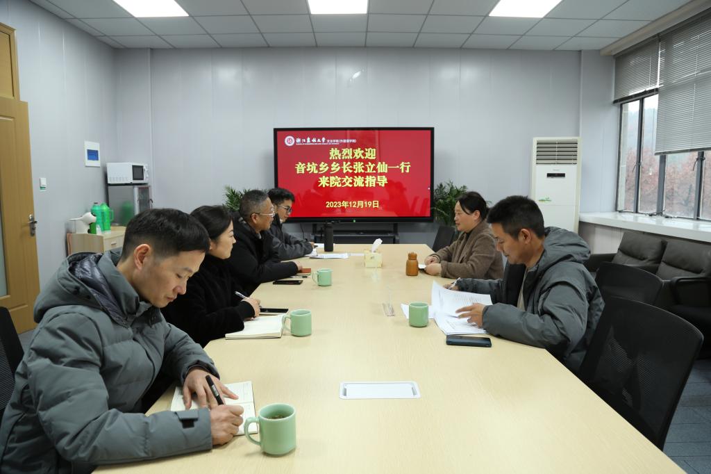 12月19日,开化县音坑乡党委副书记、乡长张立仙,党委副书记叶志勇等一行到文法学院洽谈,文法学院院长鲁可荣等领导出席并参加座谈。