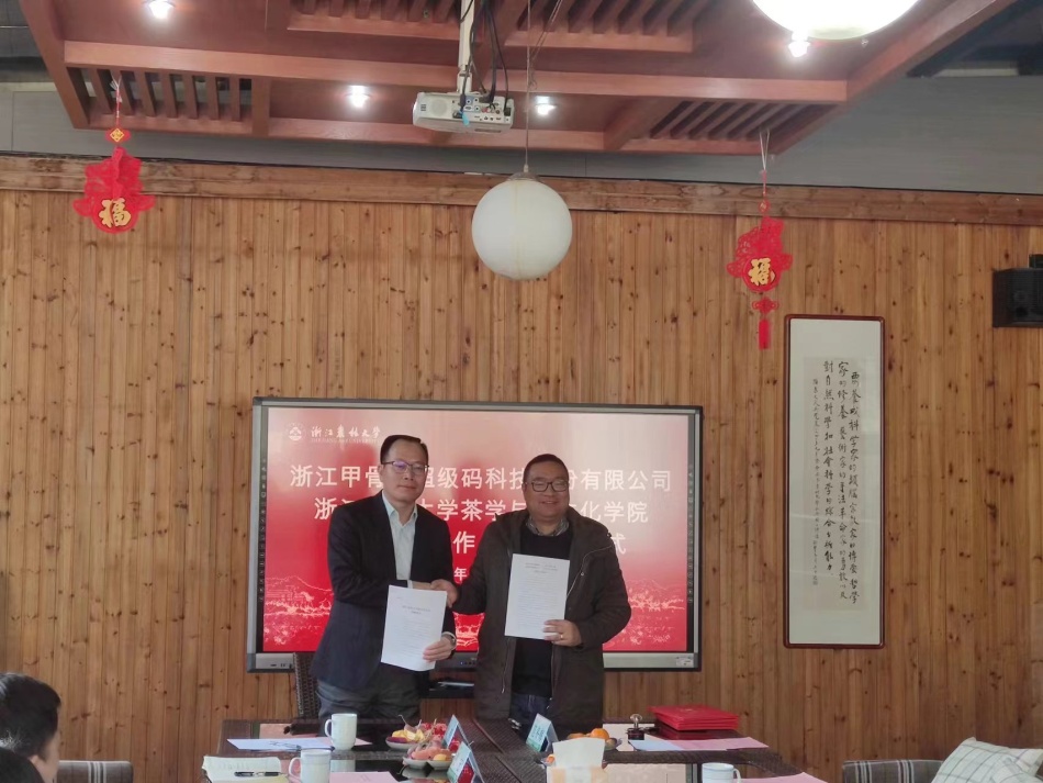 会上,茶学院和浙江甲骨文超级码科技股份有限公司签订了捐赠协议和战略合作协议,并举行聘任仪式。