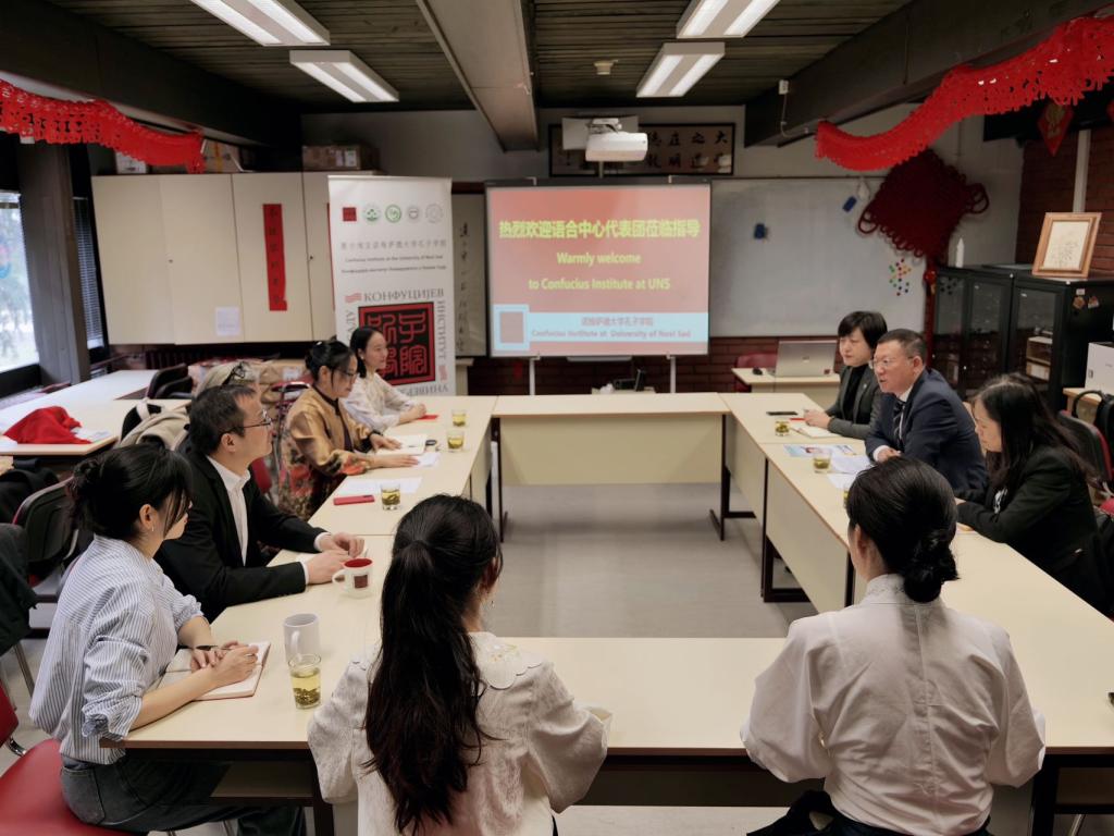 当地时间2月8日,中外语言交流合作中心主任马箭飞一行走访诺维萨德大学孔子学院,慰问孔院教师并进行座谈交流。