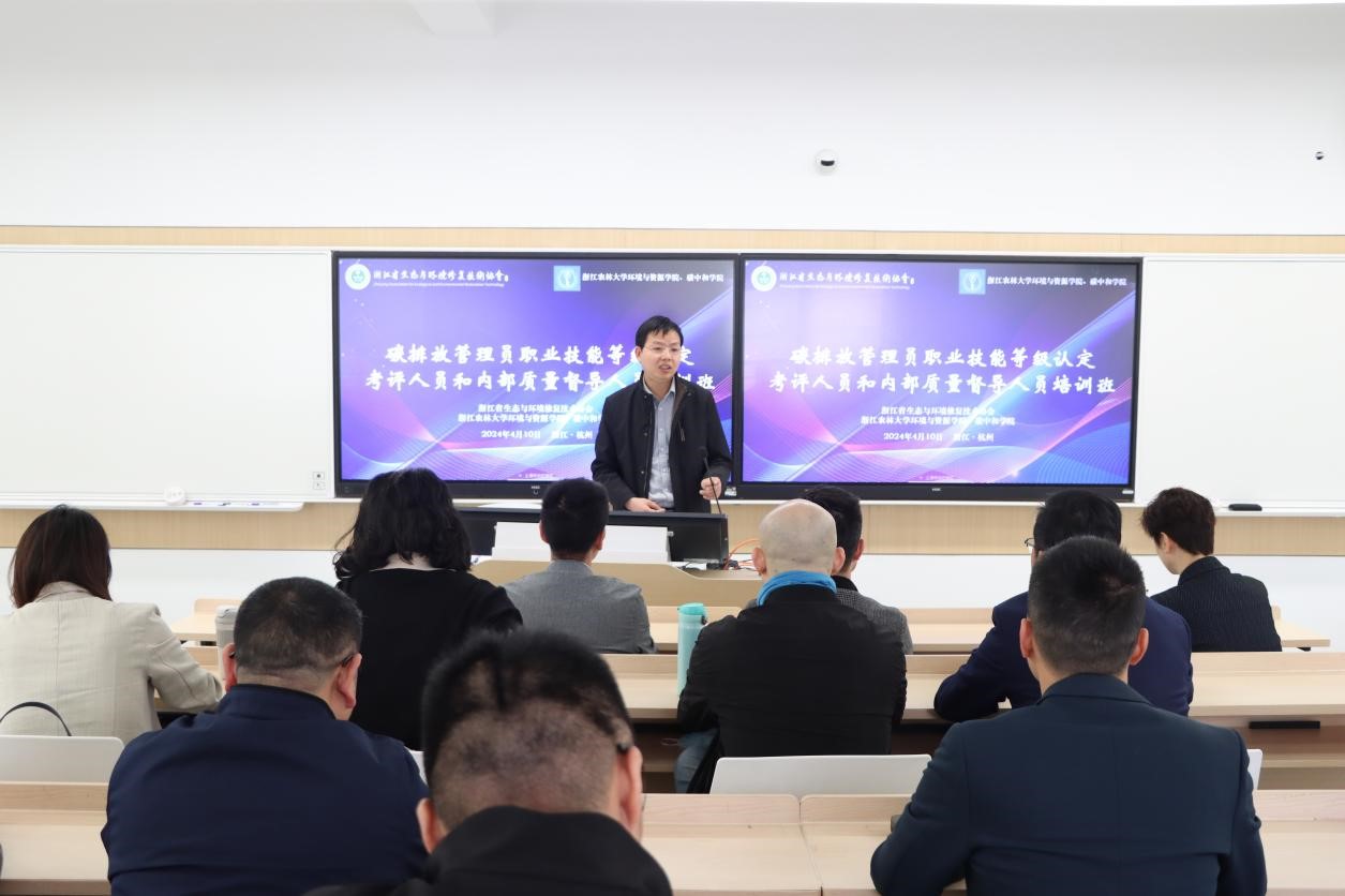 4月10日,由浙江省生态与环境修复技术协会主办,环资院、碳中和学院承办的碳排放管理员职业技能等级认定考评人员和内部质量督导人员培训班在beat365平台唯一官网东湖校区成功举办。环资院、碳中和学院张成、董达、周昕彦等教师参加培训。