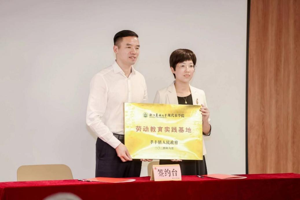 安吉县委常委、组织部部长、县委人才办主任彭琳,组织部副部长、人才办副主任郭兴华,孝丰镇党委书记沈强、孝丰镇镇长王凌霄、孝丰镇副镇长陈钟等相关负责人参加活动。在和美乡村现代化研究中心,梁卫玲与沈强分别代表农学院与孝丰镇共同签订合作协议并授牌,共建劳动教育基地,为今后双方围绕校外实践教学、专业实训、劳动教育等方面深入开展合作奠定基础。