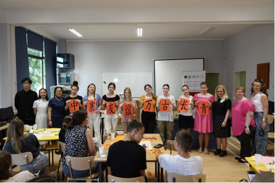 当地时间6月19日,诺维萨德大学孔子学院中方院长陈秀一行走访Petro Kuzmjak中学,并进行精彩的中文体验课教学。全校五十余名师生参加,伏伊伏丁那省电视台对此次活动进行了全程报道。