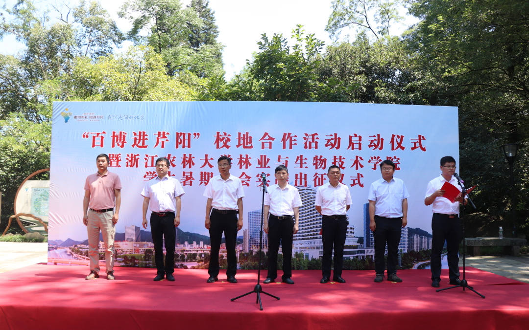 7月5日,林生院党委书记郑炳松一行赶赴开化,参加“百博进芹阳”校地合作活动启动仪式暨暑期学生社会实践出征仪式。学院相关负责人,开化县副县长张月桥、县政府党组成员吴一鸣、芹阳办事处党工委书记郑凯等相关领导,林生院师生代表,地方各村社职能站所负责人九十余人参加活动。