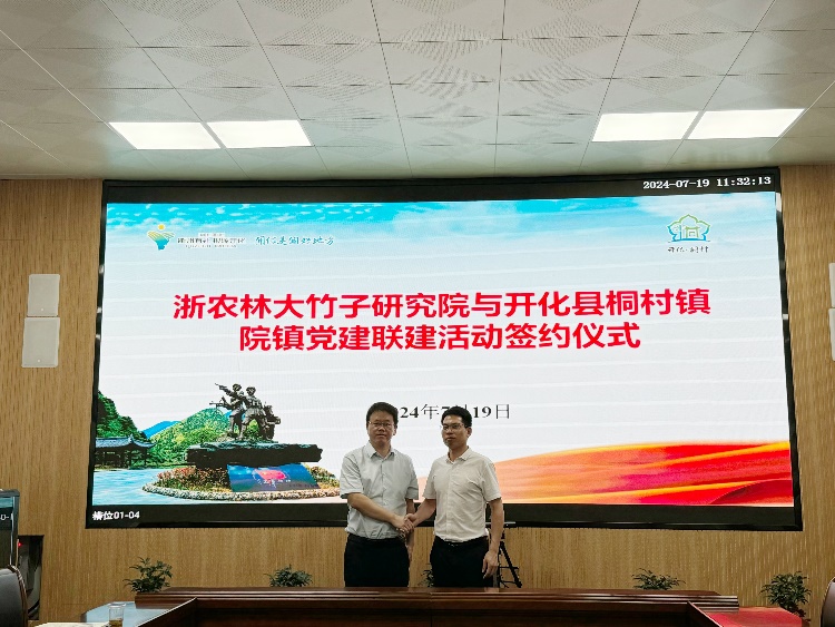 7月19日,竹研院一行赴开化县桐村镇交流调研,进一步深化源镇合作,竹研院党总支书记周能寿、桐村镇党委书记徐祝安、镇长胡亮、常务副镇长徐文俊等参加座谈交流。
