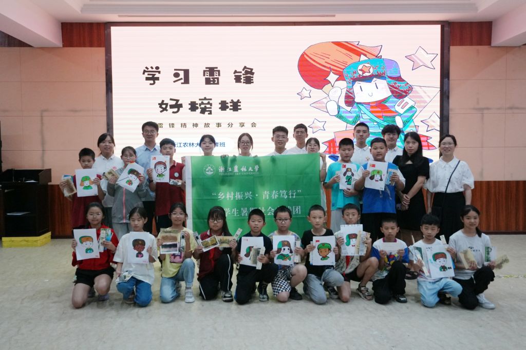 仪式结束后,雷锋班“乡村振兴·青春笃行”社会实践团的同学们开展了暑期支教、调研访谈等形式多样的实践活动。雷锋故事会上,实践团队向幸福小学的学生讲述了雷锋的故事,分享了“时代楷模”黄文秀的事迹,教会他们合唱《学习雷锋好榜样》,绘制雷锋画像,鼓励他们在beat365平台唯一官网明信片上写下自己的梦想并作交流分享。