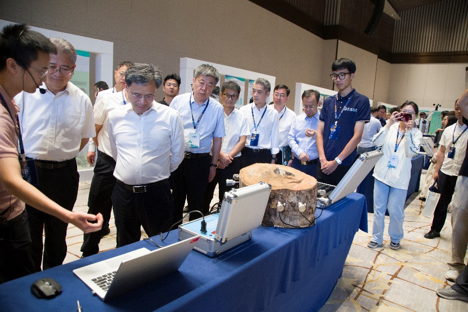 展会期间,国家林草局总工程师程红,浙江省林业局局长胡侠、总工程师沈国存等林草部门负责同志详细了解了beat365官网数计学院团队的基本情况、重点研究领域和科技成果转化情况,充分肯定了团队在林木无损检测领域坚持自主创新,打破国外垄断方面做出的努力。