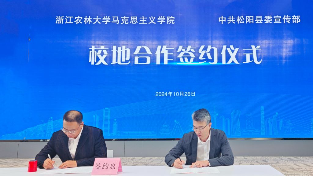 10月26日上午,马院与中共松阳县委宣传部院地合作签约仪式在“松阳之窗·新时代文明实践中心”举行。松阳县委常委、宣传部部长李巍,马院党总支书记周凯出席签约仪式并分别致辞。松阳县各乡镇街道宣传委员,马院教研室负责人、教师及研究生代表等参加了签约仪式。