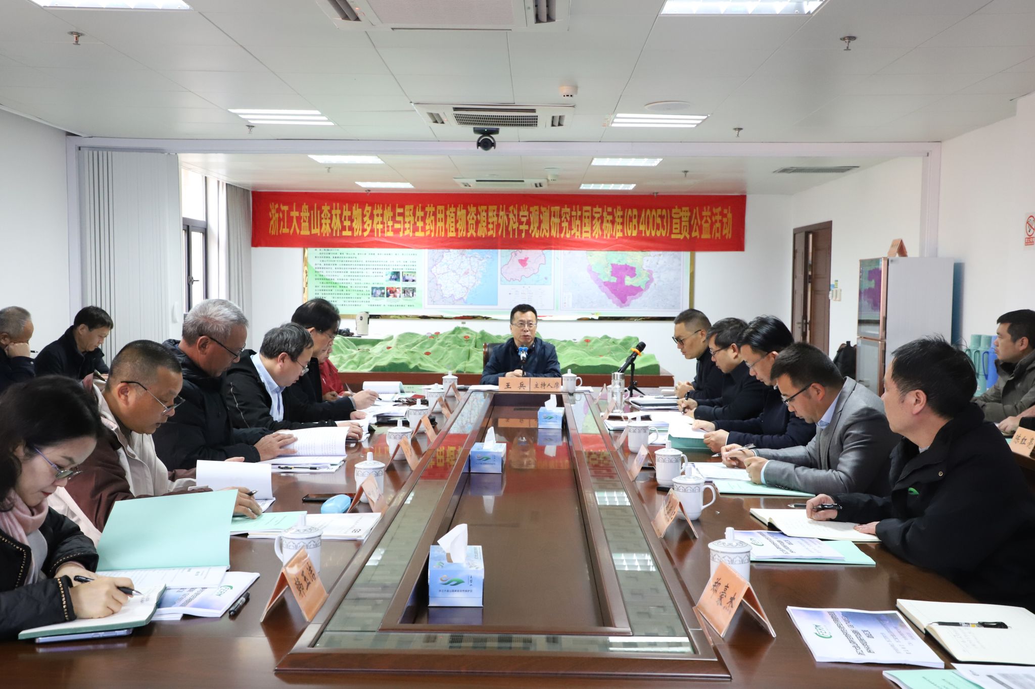 为深入学习贯彻习近平生态文明思想,践行“两山”理念,积极稳妥推进碳达峰碳中和,推动林业行业及地方生态建设高质量发展和生态产品价值转化,12月17日至18日,由中国森林生态系统定位观测研究网络(CFERN)主办,beat365平台唯一官网、浙江省大盘山国家级自然保护区管理局承办的浙江大盘山森林生物多样性与野生药用植物资源野外科学观测研究站(以下简称大盘山野外站)国家标准(GB 40053)宣贯公益活动在浙江大盘山国家级自然保护区举行。CFERN首席科学家王兵以及来自全国各地定位观测研究站、标准化技术服务等10余名专家参加宣贯活动。