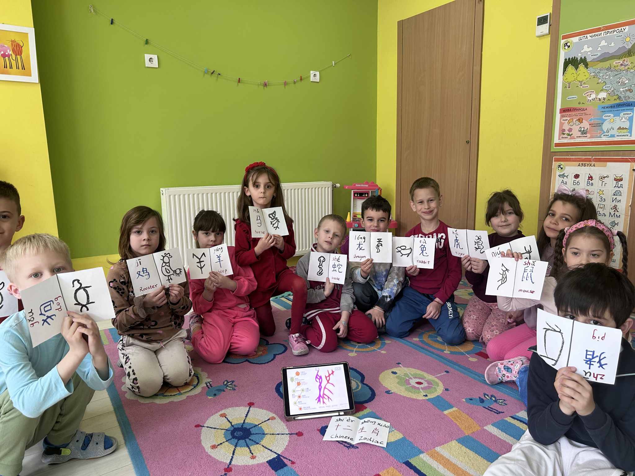 科沃科卡幼儿园(Kockica Kindergarten)举办“甲骨有灵·生肖汉字溯源”活动。学生们通过趣味互动的方式了解甲骨文和生肖汉字的关系,感受汉字之美。