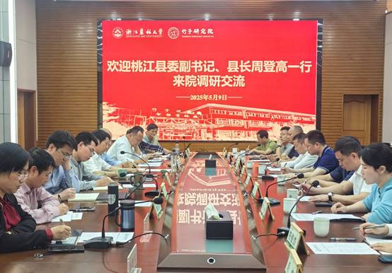 5月9日,湖南桃江县委副书记、县长周登高一行来竹子研究院调研,交流合作事宜。竹子研究院党政领导班子、各创新团队负责人等参加座谈。座谈会由竹子研究院名誉院长方伟主持。