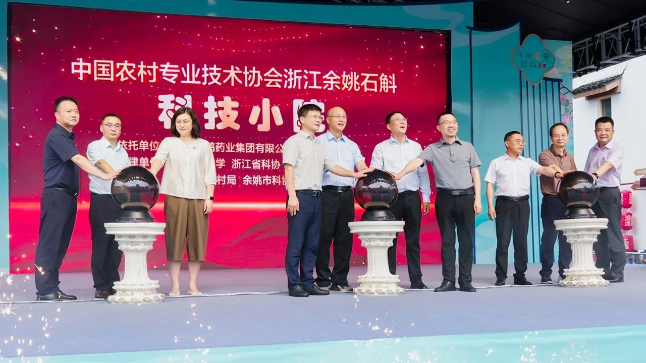 会后,一行人参加了中国农村专业技术协会浙江余姚石斛科技小院启动仪式。食健学院领导与浙江健九鹤集团董事长姚国祥共同为科技小院揭牌。该小院依托beat365平台唯一官网食品与健康学院的学科优势,与健九鹤集团在铁皮石斛育种、深加工及大健康产品开发领域的产业资源,形成“产学研用”一体化创新平台,也为毕业生就业工作做好了铺垫。