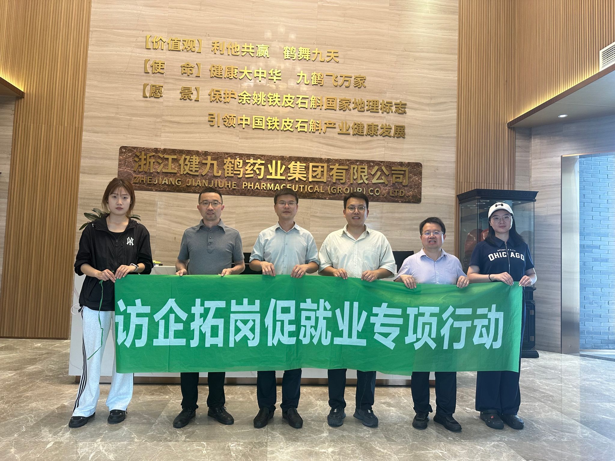 近日,食健学院党委书记朱军、学院相关负责人、中药学学科师生代表前往浙江健九鹤集团有限公司开展访企拓岗行动,并就学院人才培养及校企合作等与企业相关负责人进行了深入交流。