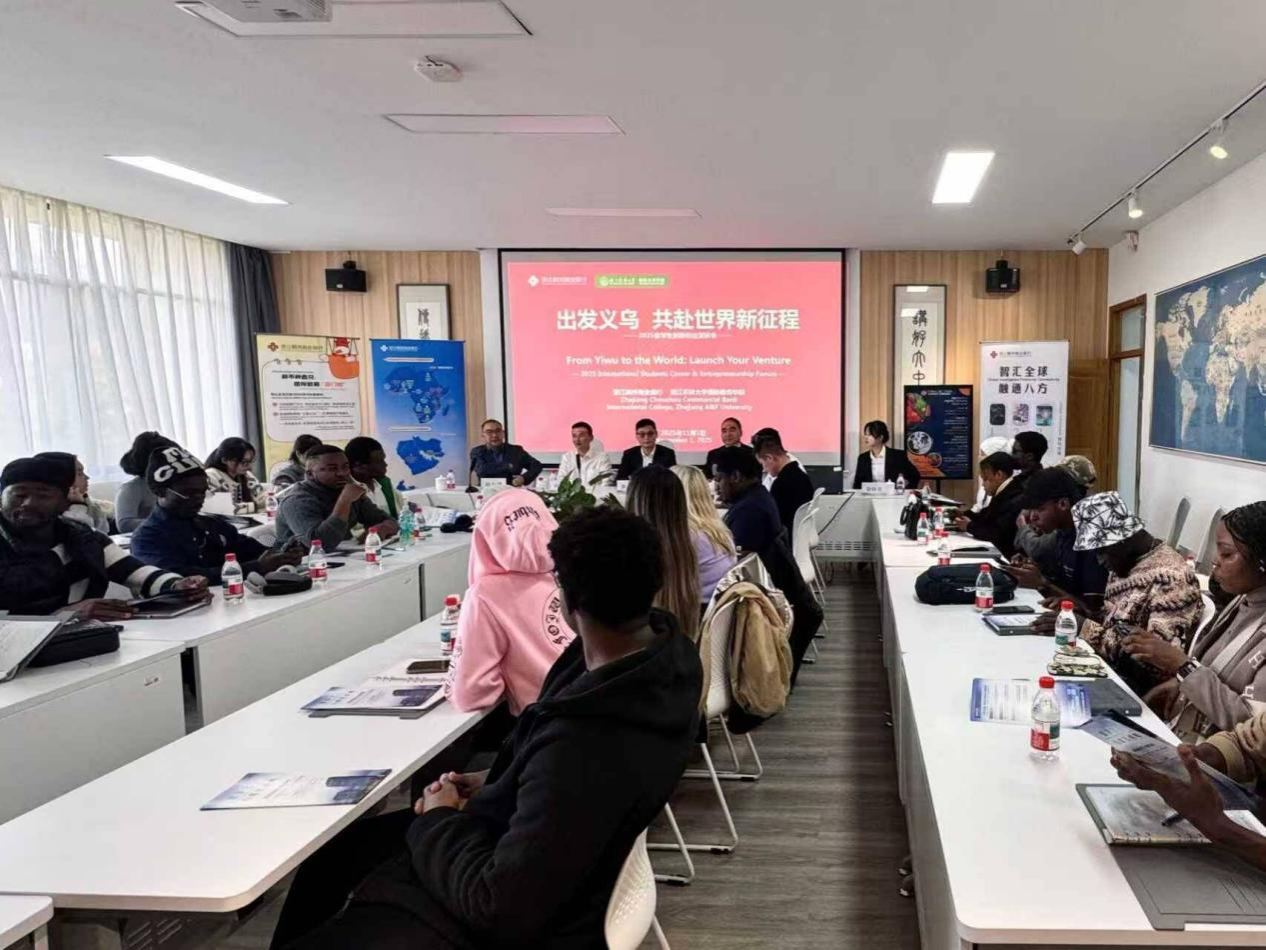 国教学院院长在致辞中表示,学校始终聚焦国际教育中“感知中国”实践创新,这与义乌“招引—实习—就业—创业”一站式人才支持体系高度契合,期待通过与稠州银行的深度联动,依托义乌商贸资源优势,为“一带一路”国家优秀青年搭建从校园到社会的实践桥梁,为国际教育“提质增效”提供新的路径。