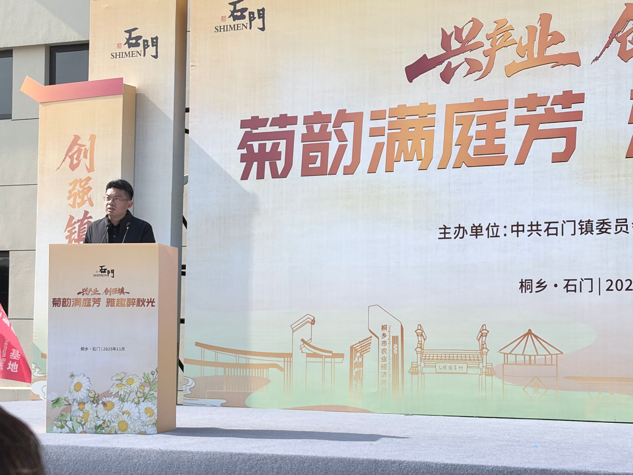 11月15日,杭白菊品牌推广活动在桐乡石门镇举行。动科动医学院王翀教授与茅慧玲副教授出席活动。