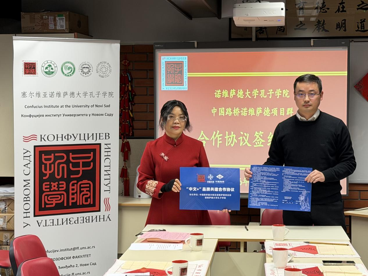 中国路桥诺维萨德项目群负责人于道勇和诺大孔院中方院长陈秀共同签署“中文+”品牌共建合作协议。双方表示,在今后的合作中将秉持“共商共建共享”理念,发挥双方所长,在国际中文教学和文化活动中更好融入工程力量,携手打造更具美誉度和影响力的文化活动,为深化两国人文合作、服务高质量共建“一带一路”贡献积极力量。