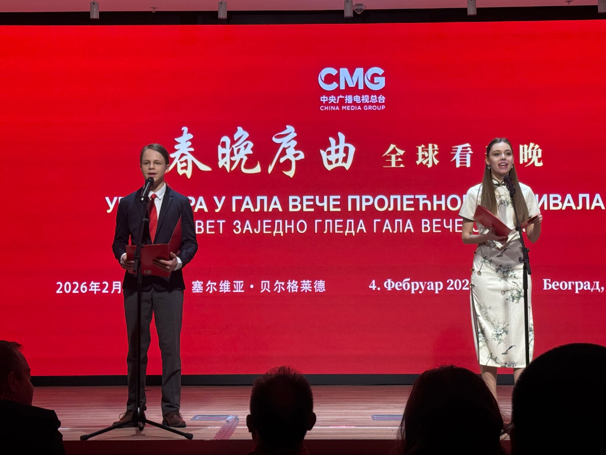 当地时间2026年2月4日,“春晚序曲·全球看春晚”塞尔维亚专场在贝尔格莱德中国文化中心举行。中国驻塞尔维亚大使馆大使李明、塞尔维亚国民议会议长布尔纳比奇等多名国家政要出席活动并致辞。中塞各界嘉宾约300余人参加。诺维萨德大学孔子学院师生受邀献上茶艺表演与中塞双语诗歌朗诵,以艺术形式传递中塞文化交融之美。
