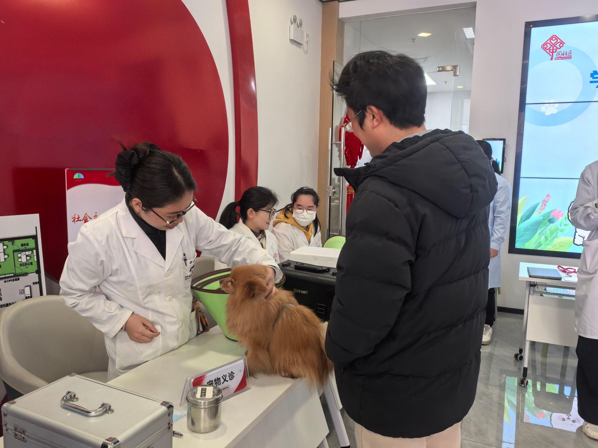 活动现场,党员教师及志愿者为社区居民的宠物进行听诊、触诊、皮肤检查、耳道清理等健康服务。对关于宠物饮食、疫苗接种、行为训练等方面的疑问耐心解答,结合春季动物疫病防控特点,普及了科学养宠和人畜共患病防范知识,引导居民规范养宠行为,推动文明养宠理念深入人心。