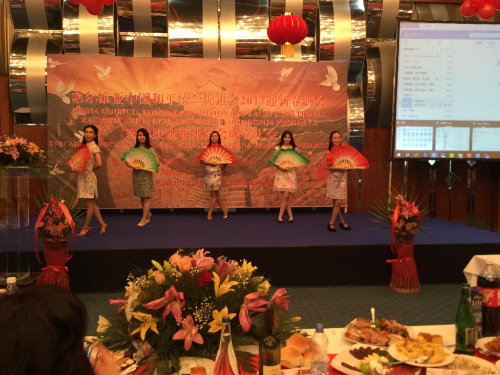 当地时间2017年1月10日,塞尔维亚中国和平统一促进会迎新春酒会暨塞尔维亚丽水商会成立大会在贝尔格莱德举办。塞尔维亚总统顾问Jovan Roganovic、 国家资产管理局局长Jovan Vorkapic、中国驻塞尔维亚大使馆代办卢山等中塞嘉宾共三百多人参加了该活动。期间,诺维萨德大学孔子学院成功助力推广多彩的中国文化,深受大家的赞誉。