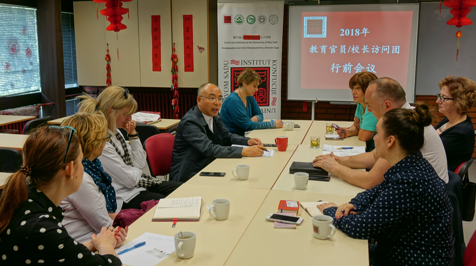当地时间4月13日,塞尔维亚诺大孔院召开了2018年赴华教育官员/校长访问团行前会议,就4月底塞尔维亚教育官员/校长赴华访问的行程安排及活动内容等事宜进行了讲解。伏伊伏丁那省教育厅副厅长杜西察·拉基奇(Dušica Rakić)、诺维萨德大学副校长毕丽安·娜阿布拉莫维奇(Biljana Abramović)及合作教学点中学的校长等参加会议,会议由中方院长陈晦主持。