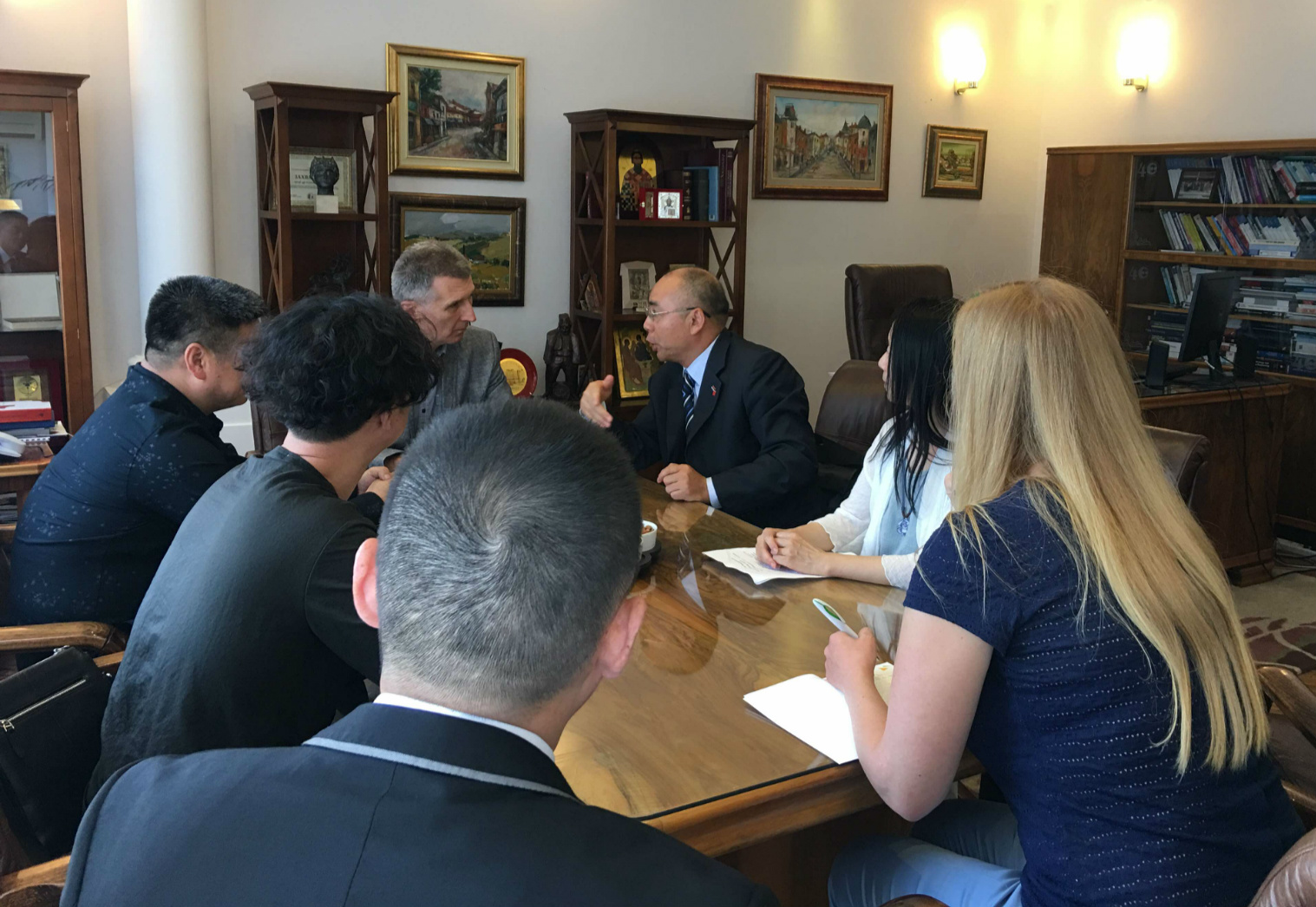 当地时间5月29日,诺维萨德大学孔子学院中方院长陈晦一行,就深化院地合作,加快汉语教学点建设,前往苏博蒂察市考察并洽谈,与苏博蒂察市市长波格丹·拉班(Bogdan Laban)、诺大经济学院副院长汤姆斯拉夫·苏达莱维奇(Tomislav Sudarevic)等进行沟通对接,苏博蒂察市电视台进行了专题采访。