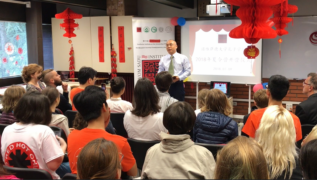 当地时间7月9日,塞尔维亚诺维萨德大学孔子学院2018年本土夏令营在诺大哲学院举办开营仪式。此次夏令营主要开设初级汉语课程、书法、太极拳等课程。