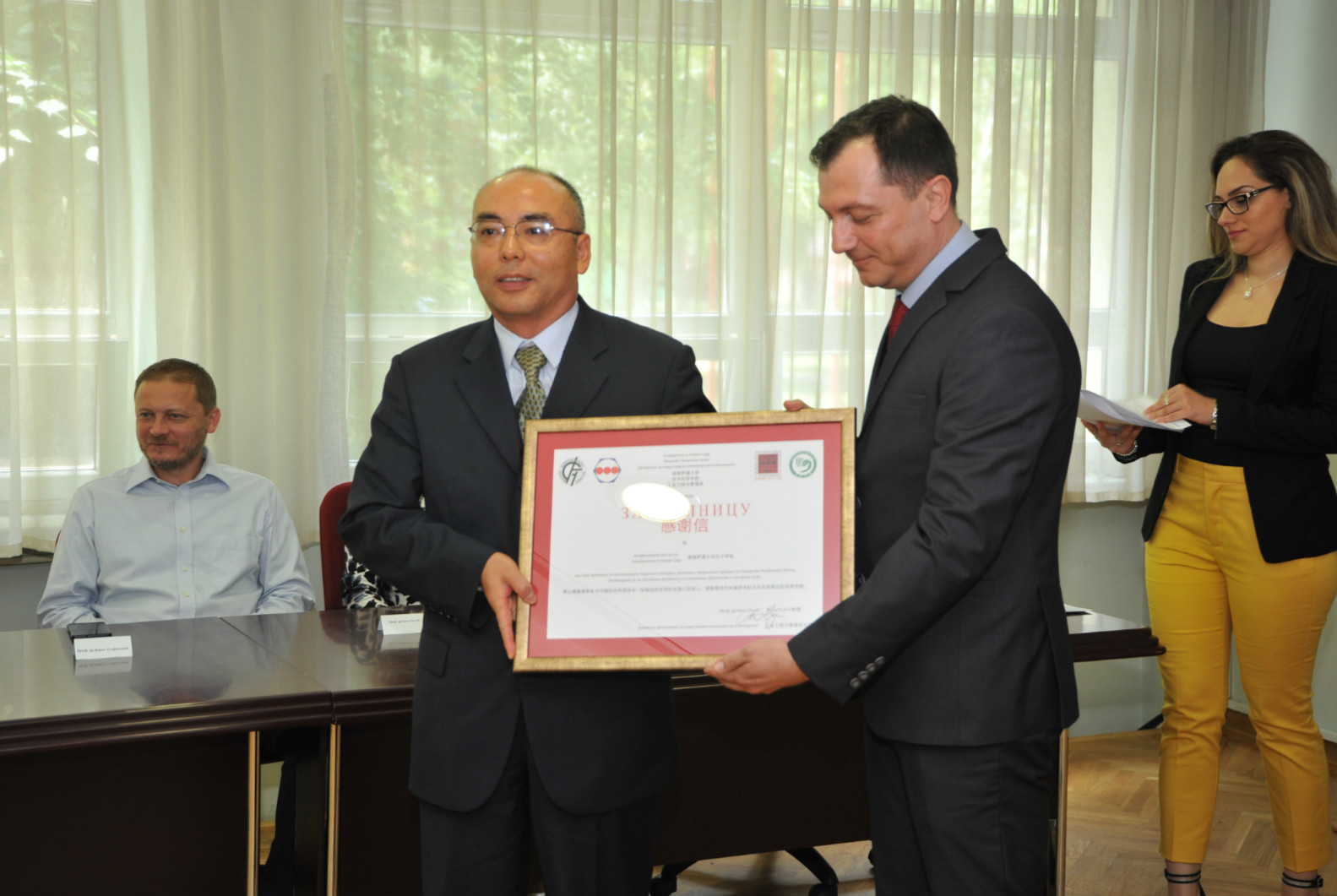 当地时间7月10日,在塞尔维亚诺维萨德大学技术科学学院39周年庆典大会上,孔子学院因对诺维萨德大学、诺大“一带一路”研究院的支持以及为“16+1”第五届中国—中东欧国家教育政策对话会做出的贡献,获得技术科学学院颁发的感谢证书。