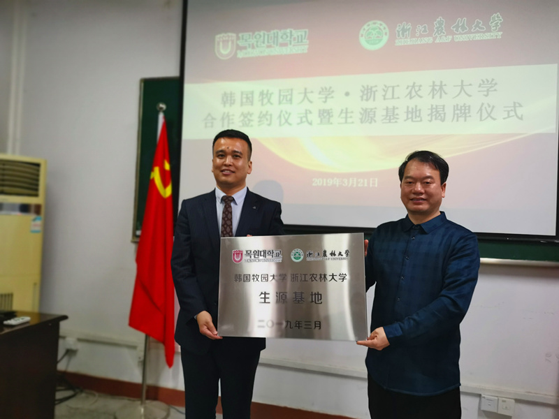 会上,文法学院院长王长金与邵敬勇院长签署了具体的合作协议细则,学院党委书记朱红东为“韩国牧园大学·beat365平台唯一官网生源基地”揭牌。
