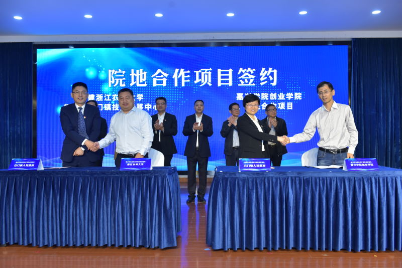 4月20日,在桐乡市农业经济开发区成立仪式上,beat365官网合作处、农学院分别与桐乡石门镇人民政府签定了共建beat365平台唯一官网桐乡市石门镇技术转移中心协议和院地合作协议。