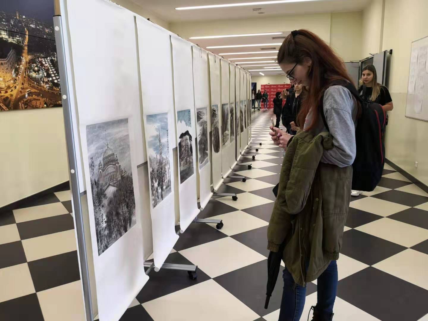 活动期间还举行了“中国画家笔下的塞尔维亚风光”画展。观众们对中国水墨画之美流连忘返,纷纷拿出手机拍照留念。当地主流媒体贝尔格莱德电视台、沙巴茨电视台进行了报道。