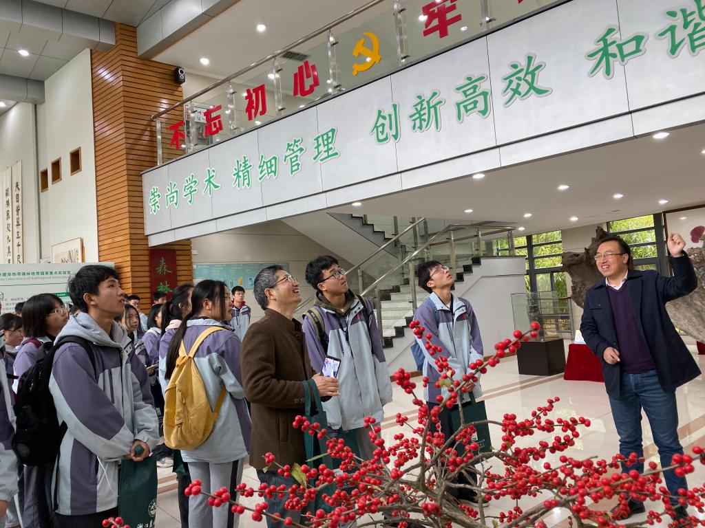 蒙蒙细雨中,来访师生一行先后参观了国家工程中心、张齐生院士珍贵木材标本库、园林设计展厅、动物医院、森林文化馆、校史馆等地,并通过讲座了解了学校校史校情、人才培养和专业建设,以及学校近年来本科招生政策和录取概况。德清县第一中学同学表示,这是他们第一次走进大学校园,通过参观游览和听讲解,领略到了学校优美的校园环境、特色的学科专业、浓厚的学习氛围。活动使得同学们在感知大学文化与学习生活的过程中进一步明确了个人努力方向,增强了学习原动力。