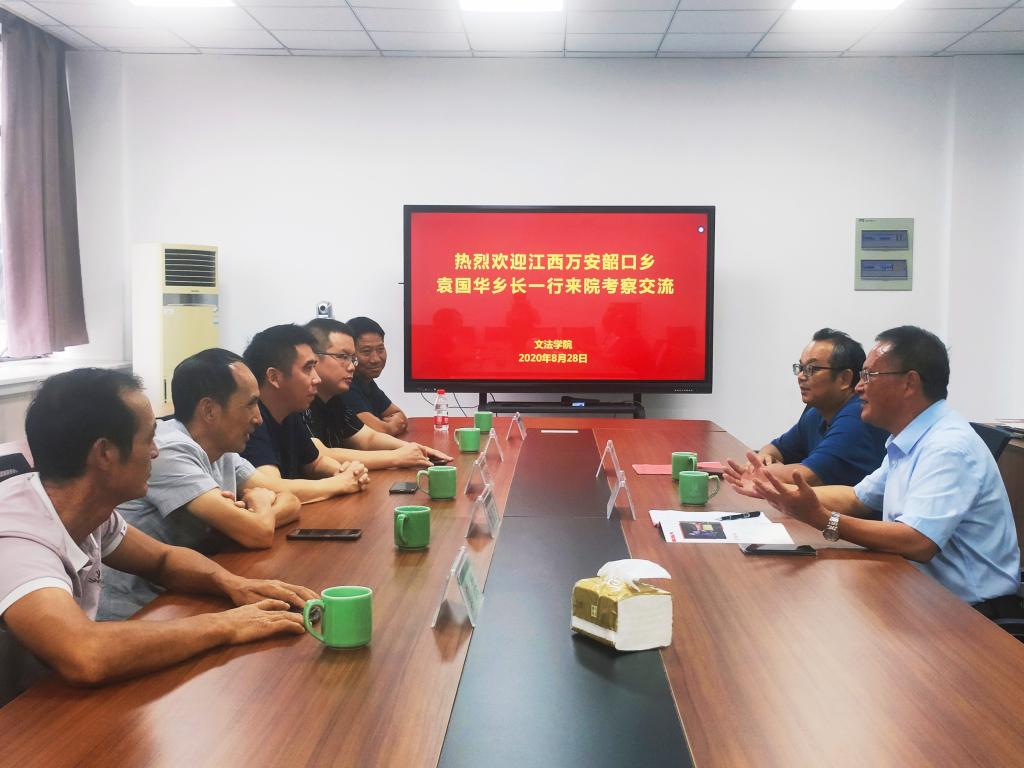 8月28日下午,由乡长袁国华率领的江西万安县韶口乡考察团一行五人来文法学院交流。院长王长金对来宾表示热烈欢迎。
