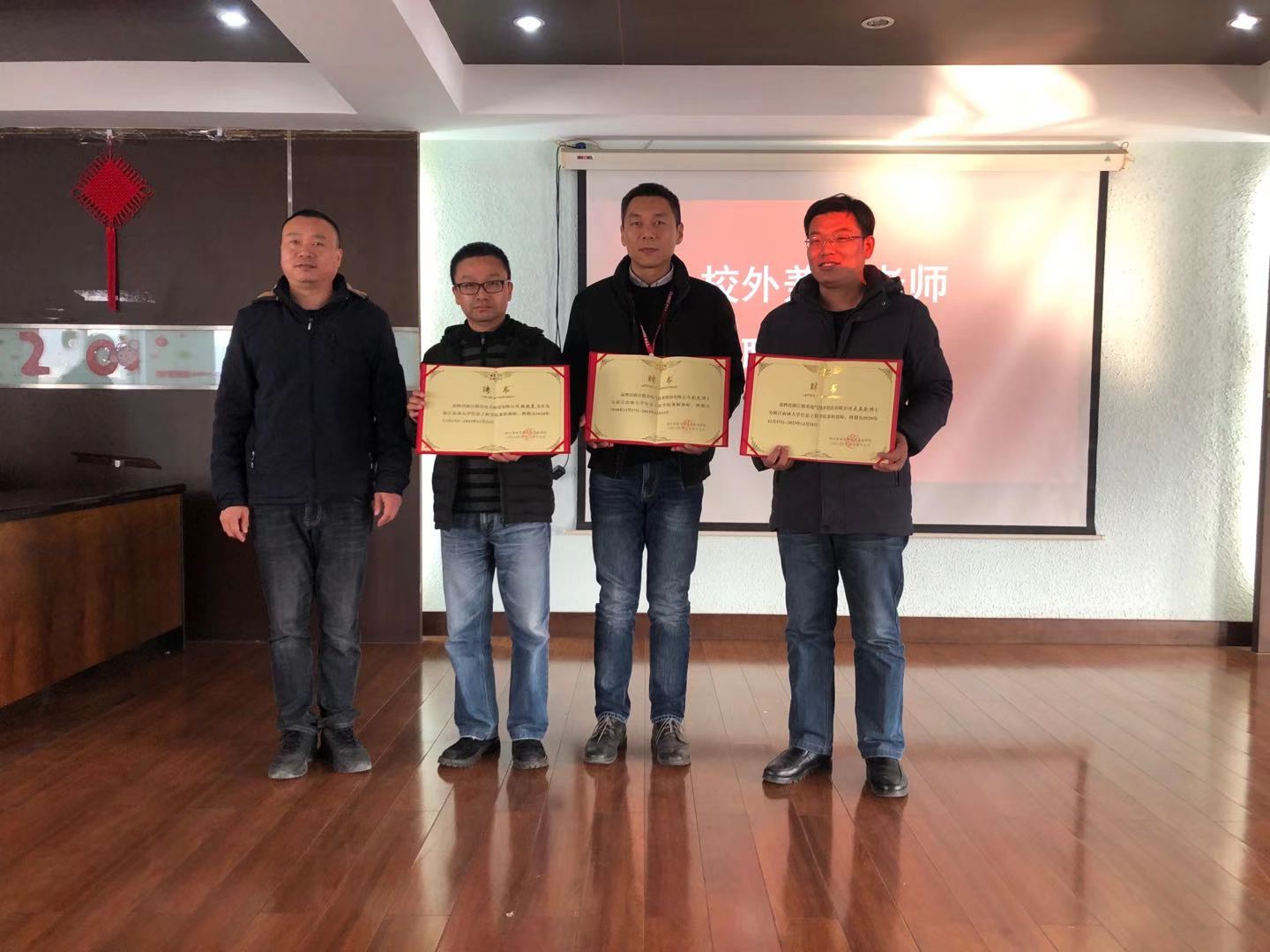 学院相关负责人介绍了电子信息工程专业的基本情况,感谢都美电气技术股份有限公司对beat365平台唯一官网信息工程学院办学的支持,并预祝双方合作取得丰硕成果。同时,他还勉励电子信息工程专业学子珍惜实习机会,开阔眼界,学好本领。两人代表双方在共建校企实习基地协议书上签字,并完成揭牌仪式。之后,学院相关负责人为相关技术人员颁发了校外兼职教师聘书。