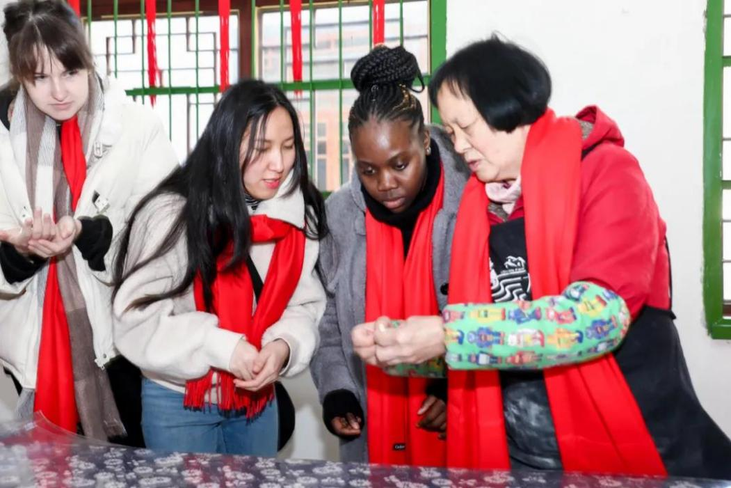 在龙门秘境景区,围着火盆烤烤火、唠唠家常,再吃上一口刚烤好的年糕,最是惬意不过,体验完“崩爆米花”,留学生们迫不及待跟阿姨学起了包饺子。